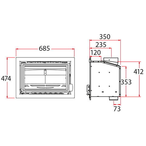 The BAY is a contemporary insert stove featuring a large landscape window framed with a clean, sharp-edged surround. The Charnwood Bay VL meets the Clean Air Act requirements for burning wood in smoke control areas. The stove boasts a variable output of between 2 and 7kW and is available in a choice of eight colours.