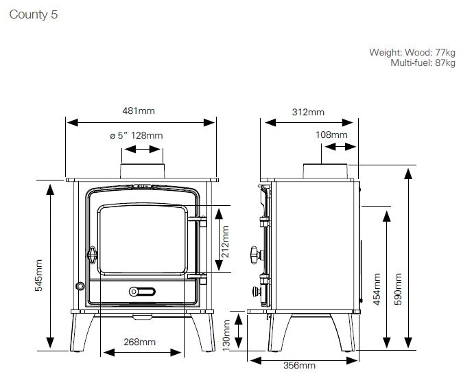 Inside the Cleanburn airflow systems help to minimise emissions, and being Ecodesign and DEFRA exempt as standard means it’s suitable for use in Smoke Control Areas. The County 5 is available as a dedicated wood burning stove, as well as a multi-fuel version with external riddling.