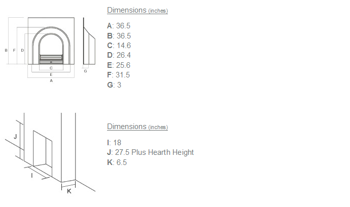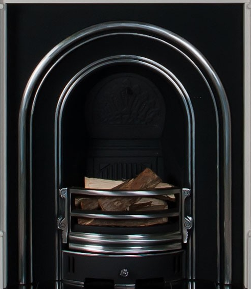 The Monarch arched fireplace is a cast that was formed on two fireplaces the look of the Jubilee with the sizes of the Coronet, made by our suppliers for us to be used in smaller mantels where space is restricted. it works really well all the style in a compact size.