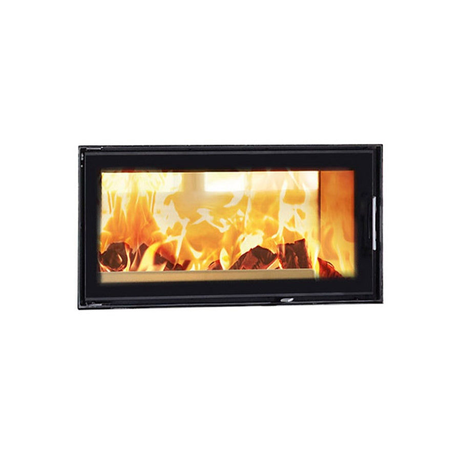 The Morsø 120 tunnel inset fireplace can be supplied either with a hinged door, which gives a fantastic view of the flames (S120-21) or with a frictionless guillotine door.