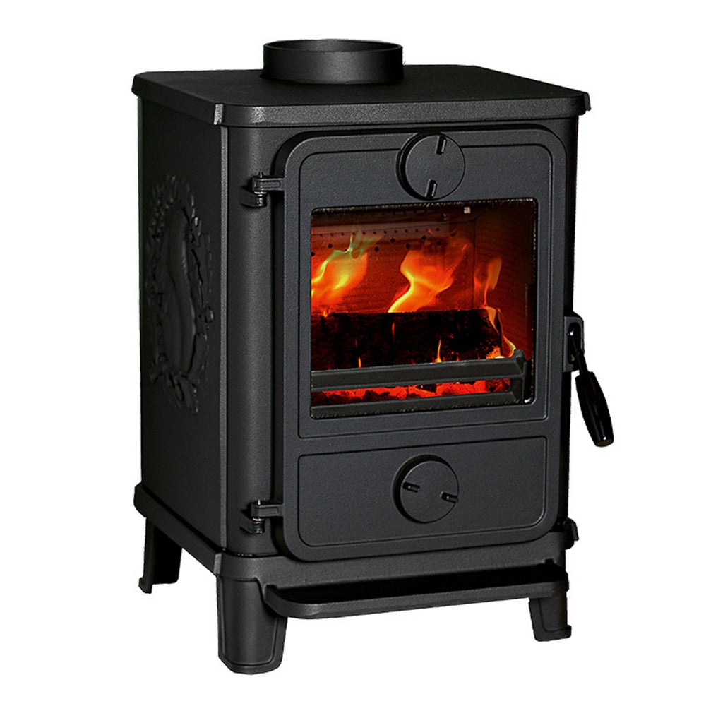 The stove has an exceptional viewing window for such a small multi-fuel cast iron stove.