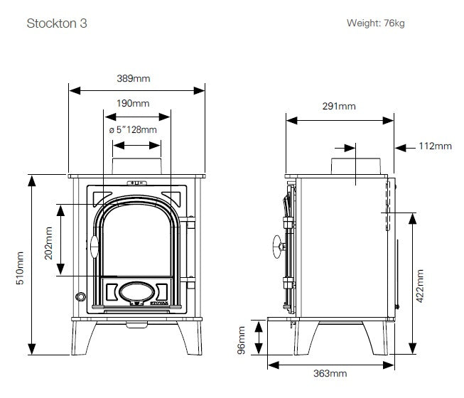 The compact Ecodesign Plus Stockton 3 is specifically designed to fit neatly into a standard 22”(560mm) high x 16”(405mm) wide fireplace opening with the airbrick removed. Thanks to its small proportions, the Stockton 3 is equally suitable for houseboats, summerhouses and garden workshops.