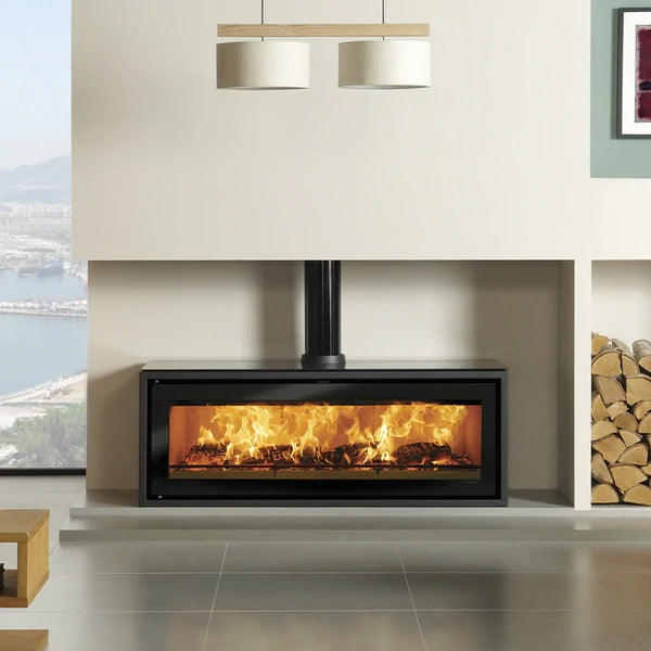 Stovax Studio fires feature the very latest clean-burn combustion systems, allowing them to burn logs with outstanding efficiency, resulting in more heat delivery into the room and less going up the chimney. This technological advancement is achieved by introducing preheated, secondary air into the firebox to burn the excess hydrocarbons in the smoke. Airwash air flow also helps keep the window clean, allowing you to enjoy the flames to the full.