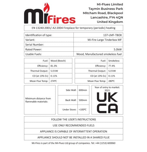 The Tinderbox Multifuel Stove - ECODesign 2022, Smoke Control Area Exempt