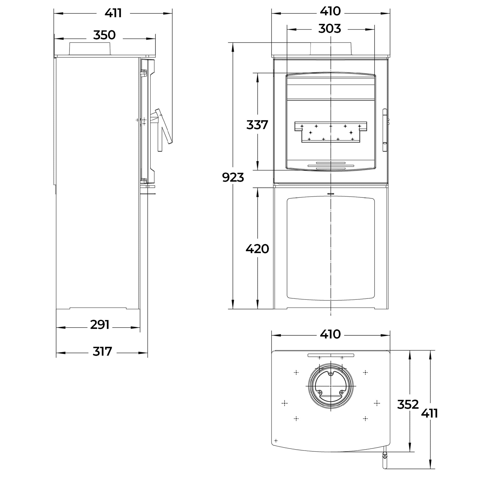 and cast iron door. The firebox is lined with 30mm vermiculite panels. Polished