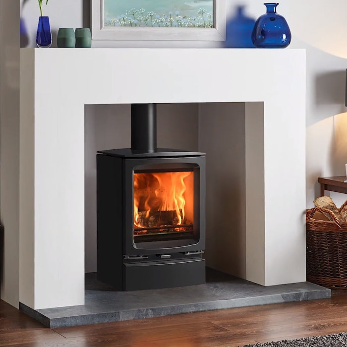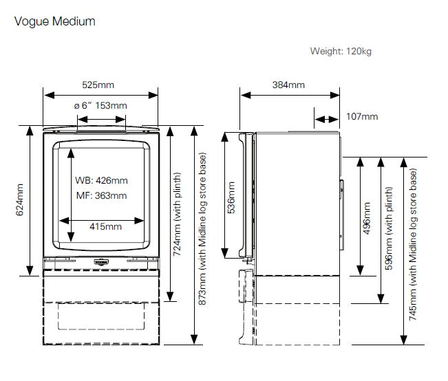 All models in the Vogue range benefit from a host of mounting choices including either a Plinth, Midline log store or one of the many Stovax stove benches.